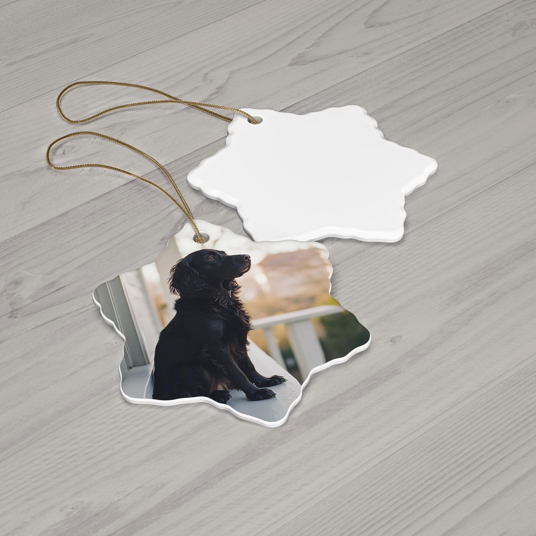Ceramic Ornament, Snowflake Shapes, Black Springer Spaniel Dog Face, Dog Mom, Dog Dad, Dog Lover, Baby Dog, Springer Spaniel, Christmas. These custom-made Christmas ornaments can be the perfect heirloom to use year after year, generation after generation. The ceramic ornaments are available in snowflake shape.